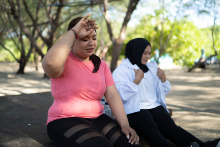 tired overweight woman with hand on forehead