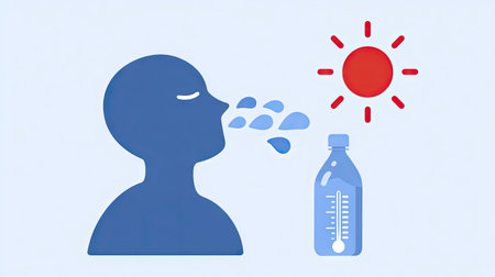 A simple graphic illustration depicting a person drinking water on a sunny day. This image symbolizes the importance of hydration for health and wellness during hot weather.