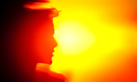Silhouette of a woman against a bright yellow-orange background