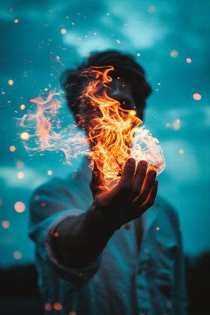 Man looking at burning match thinking about digital detox and awareness,