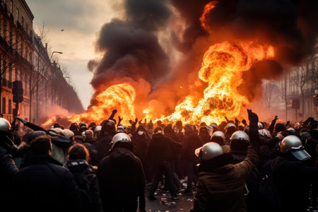 Intense Paris demonstration chaos. Street crowd. Generate Ai