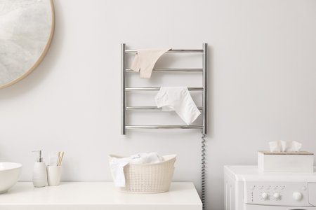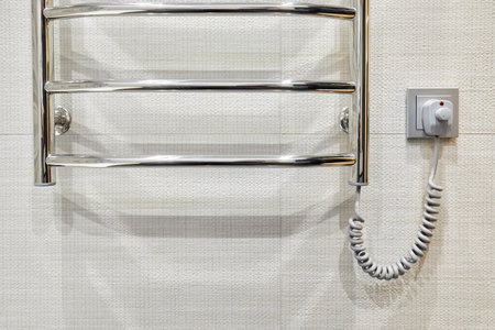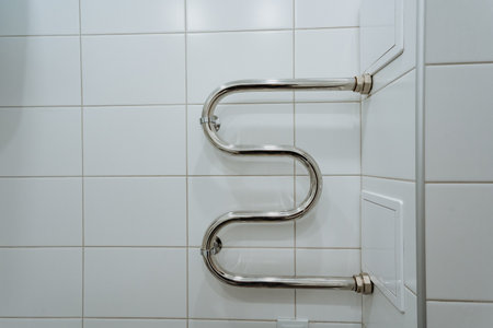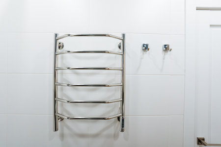 Bathroom Towel Heater Closeup. Bathroom Accessories.