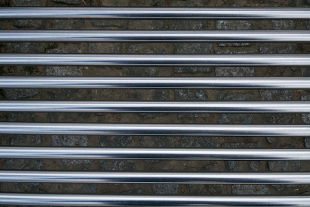 Horizontally placed stainless steel tubes hi-tech facade, iron texture.