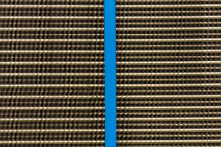 Close up aluminum fin of cooling condenser coil air condition system. abstract background.