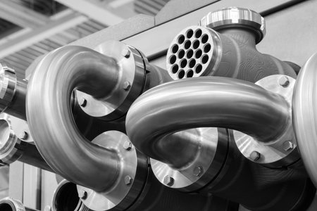 Close-up view reveals polished interior of steel heat exchanger tubes, highlighting the quality of manufacturing in industrial applications involved in thermal exchange processes.