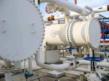 Industrial equipment for the production of gas and oil products. Industrial background.