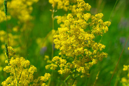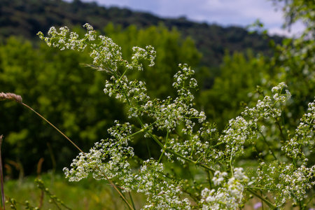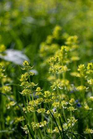 Beautiful blooming white bedstraw in June, galium album.