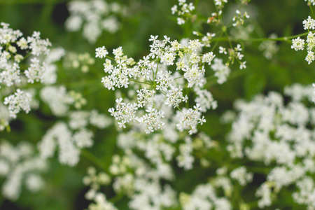 Field filled blossoms goutweed. White wildflowers, soft focus.