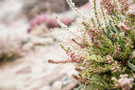 Calluna heather growing among a stones, close-up. High quality photo