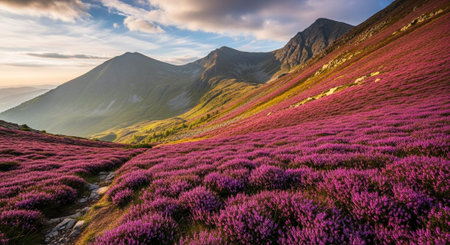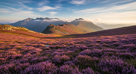 Purple heather field in natural surroundings