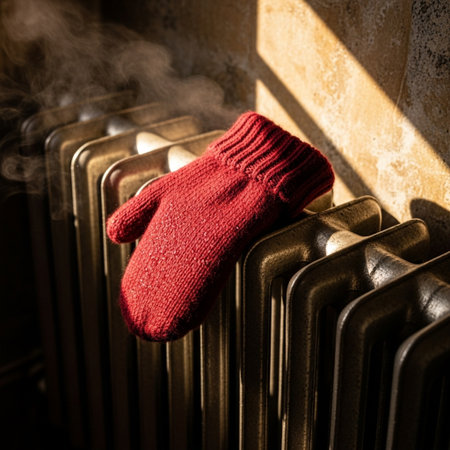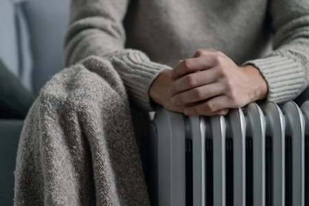 warm hands over an oil-filled mobile heater. It's cold at home, electricity is expensive.