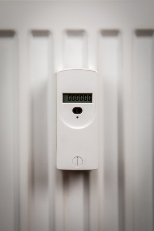 electronic heat cost allocator on radiator - symbol for saving of energy consumption