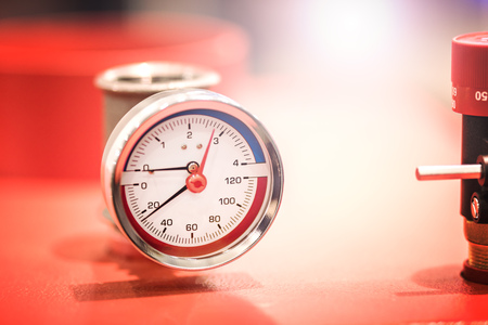 A pressure gauge showing the water pressure in the pipeline system in a private house.