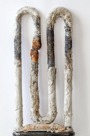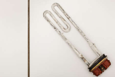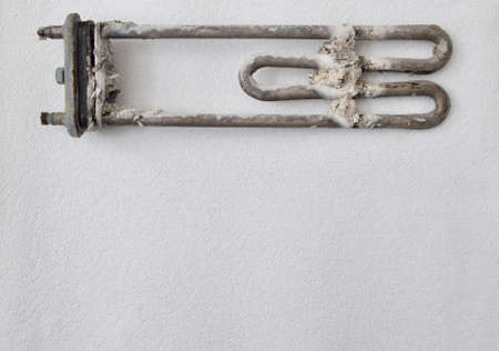 Old electric tubular heater broken with calcareous plaque