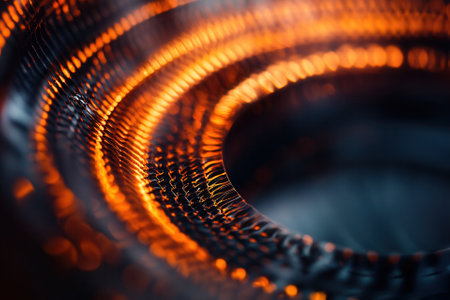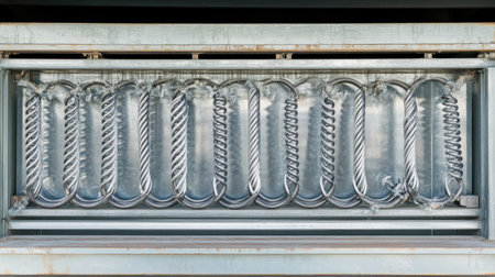 This image showcases a detailed close-up of an industrial metal coil structure, highlighting its intricate design and textured surface, suitable for engineering topics.