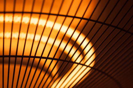 A bright hot filament spiral for a lamp or thermal heater glows orange and gives warmth