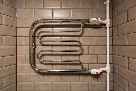 sectional radiator of the heater on the wall in room, heating pipes