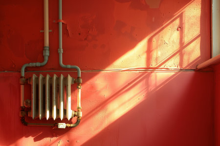 Heating radiator, orange wall