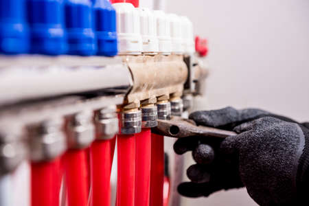 Pipefitter install system of underfloor heating system at home