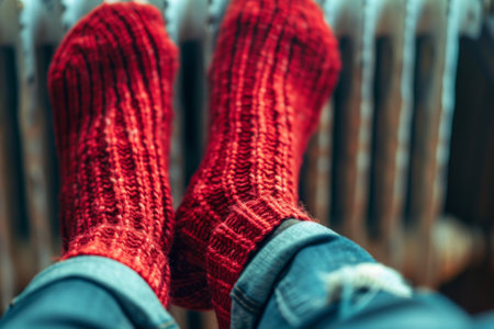 Warming cold feet on a hot radiator. Thick wool socks.