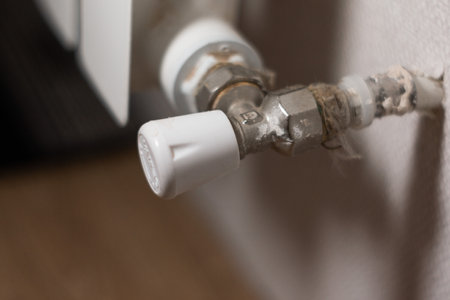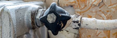 Old radiator valve close-up, heat control