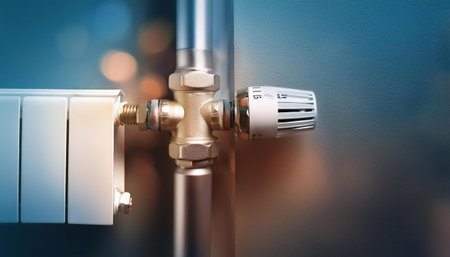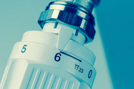 Radiator thermostat on blue background