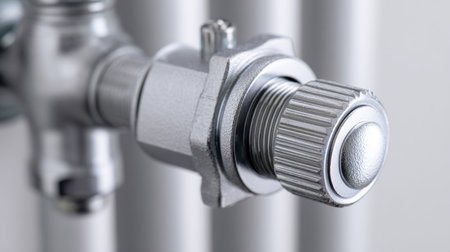 A sleek silver-toned control handle mounted on a pipe fitting, featuring precise threading for flow management in industrial and plumbing setups.