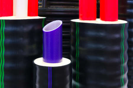 Cardboard sleeves for fireworks. Tubes for pyrotechnics. Cardboard salute launcher barrel. Selective focus