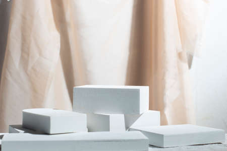 foam blocks for facade decoration and hiding construction joints are stored awaiting installation, selective focus