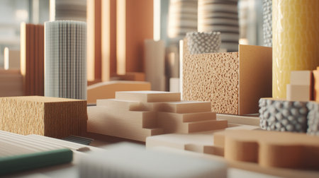 Explore a diverse collection of textured materials ideal for design and architecture projects. This assortment showcases various surfaces, colors, and shapes.