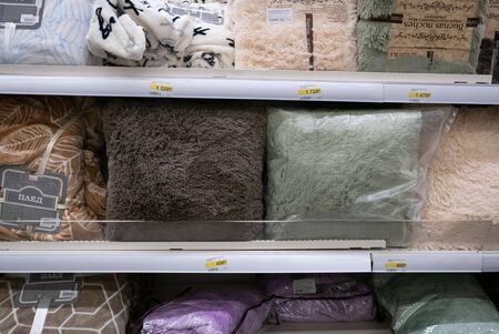 Ryazan, Russia - October 01, 2019: Different styles pillows in a shop