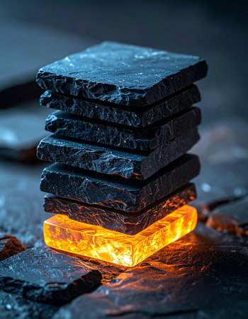 A single stone radiates immense power and heat, providing a stable, energetic foundation for the cool, dark stones stacked above.