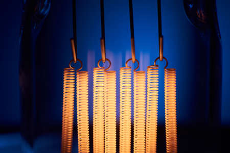 A gas burner heating up a coil of wire creating a bright glow and emitting a slight buzzing sound