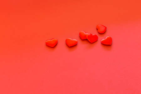 Template for greeting or wedding card. Red hearts over shiny white background with copy space for text. Love symbol. St. Valentine's Day celebration concept.