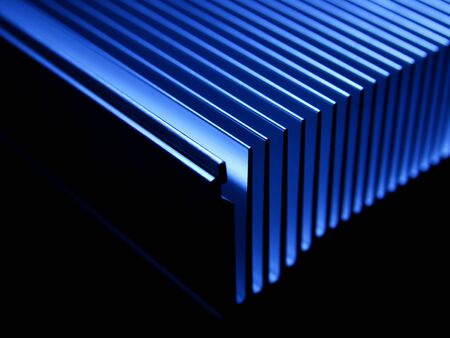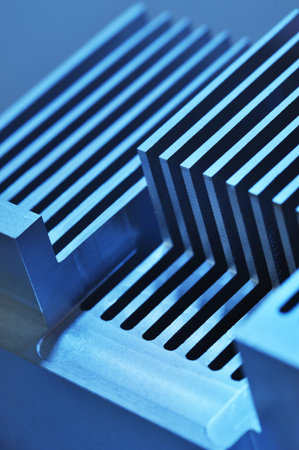 Aluminum profile close-up. Radiator profile made of aluminum. Computer cooler made of aluminum.