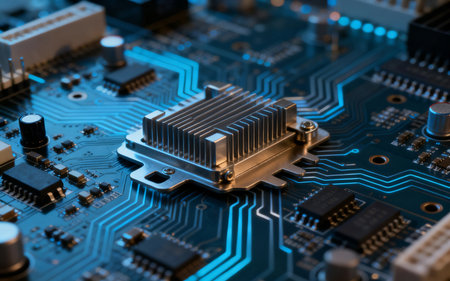 Close up of a electronic circuit board with processor