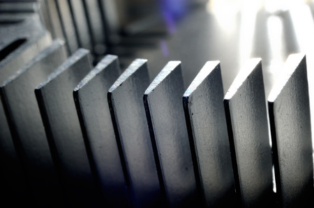 Abstract macro background with repetitive metal teeth pattern with shallow depth of field.