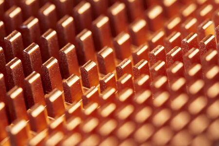 A macro shot of a copper heatsink for computer processors