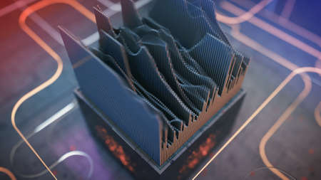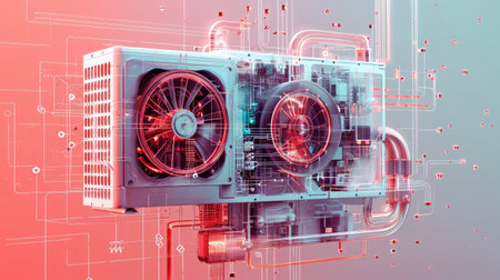Close up of modern cooling systems with intricate designs showcasing advanced technology, perfect for conceptualizing energy efficiency in electronics and computing