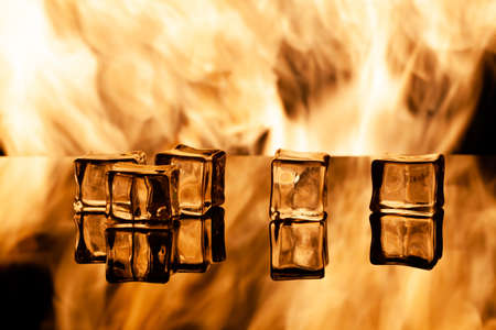 Ice and fire split background showing opposite concepts such as hot and cold, winter and summer
