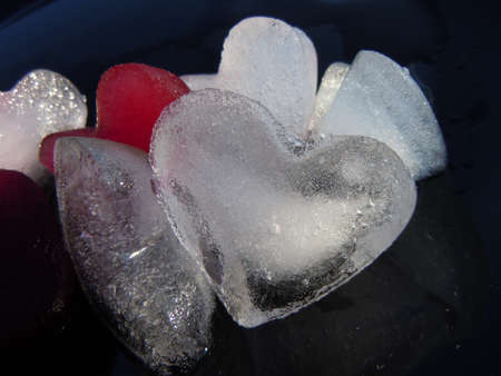Ice pieces with water drops on a black background, close-up, template, background, postcard, still life