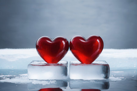 broken heart made of transparent shards of ice on the paving slabs. sad Valentine's day. The end of the relationship. Depressive emotions. Love has passed. Made with love