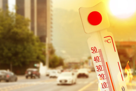 global warming high temperature city heat wave in summer season concept.