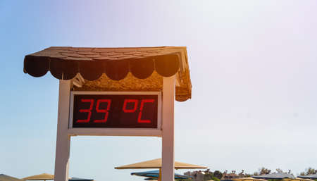 digital degrees showing air temperature by the sea