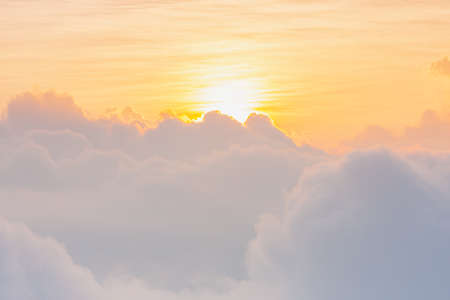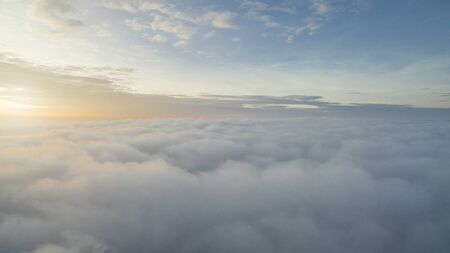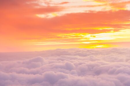Beautiful sunrise cloudy sky from aerial view. Airplane view above clouds - Background