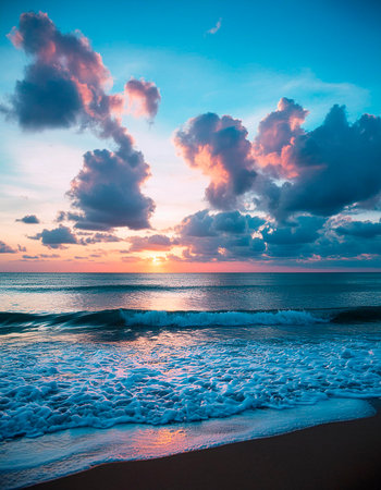 AI Generated. Serene Ocean Waves with Colorful Sky at Sunset
