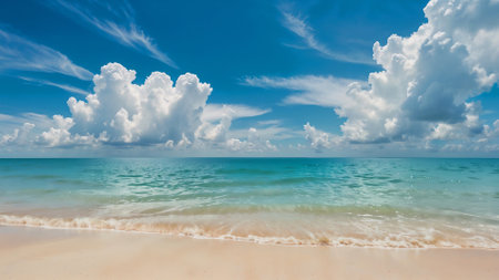 AI Generated. Serene Tropical Beach and Clouds on a Sunny Day