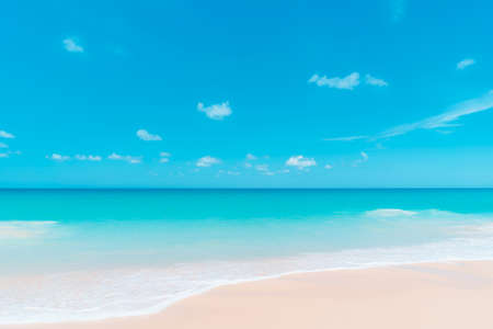 Beautiful tropical beach with blue sky and white clouds abstract texture background. Copy space of summer vacation and holiday business travel concept. Vintage tone filter effect color style.