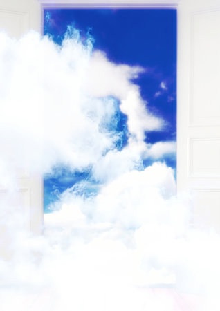 Cloud comes out the open door. Creative mind and escape concept. This is a 3d render illustration
