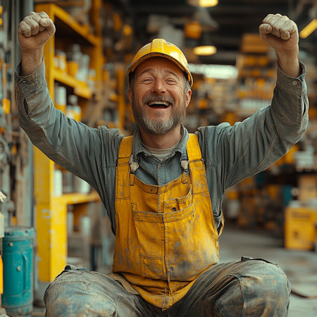 Smiling Construction Worker: A photo of a construction worker smiling, showing his positive attitude
